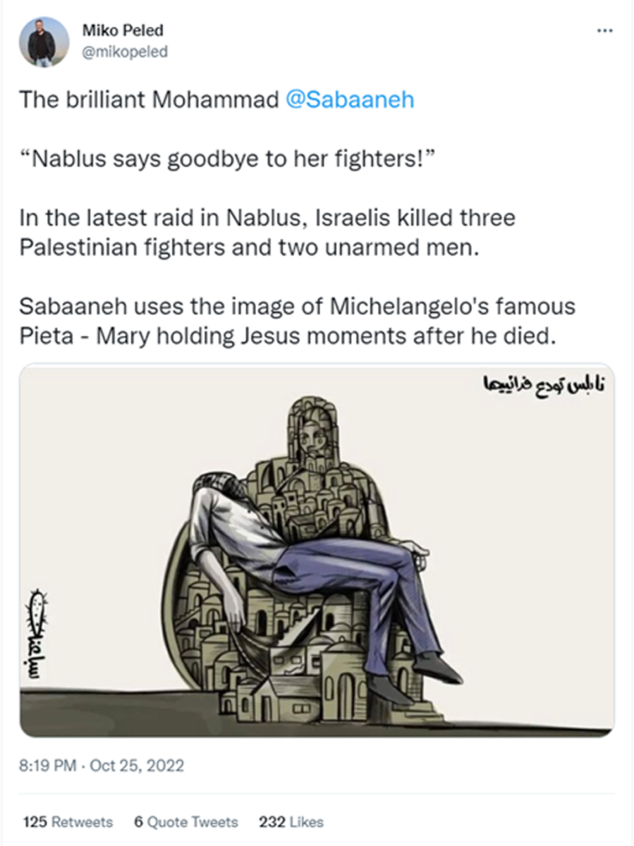 Tweet from Israeli anti-Zionist author Miko PeledOn October 25, 2022, Israeli anti-Zionist author Miko Peled tweeted the following: